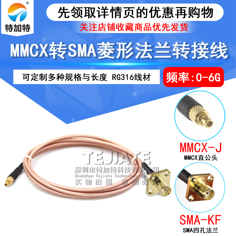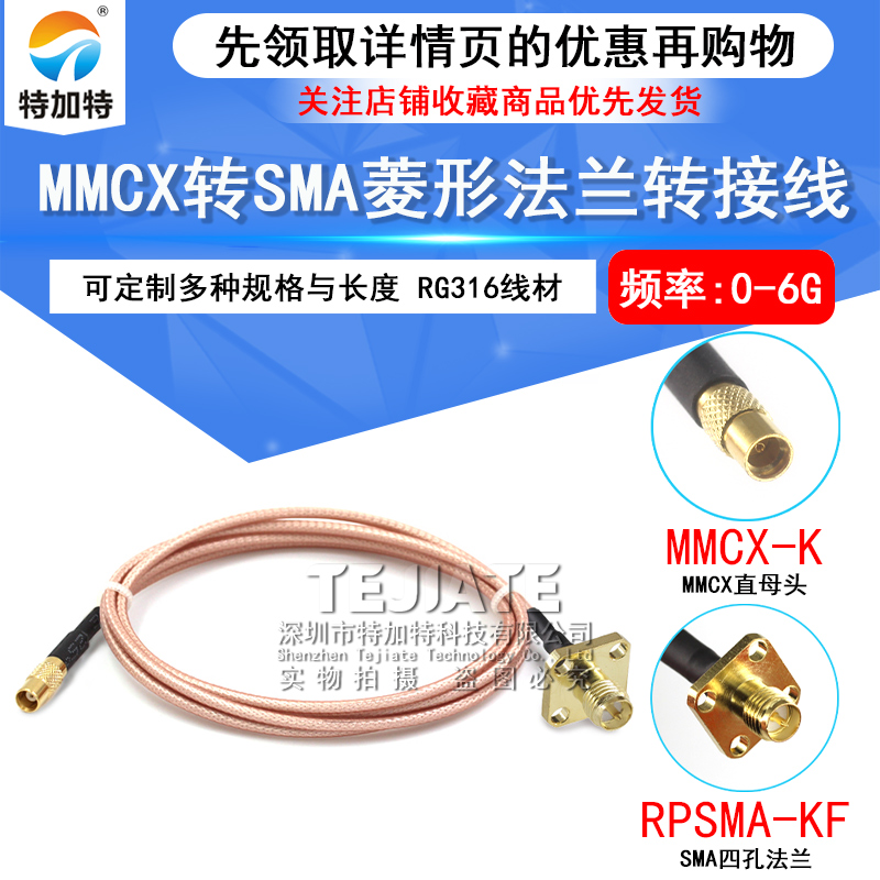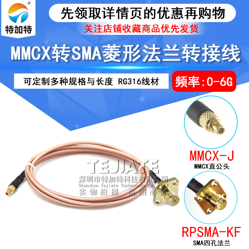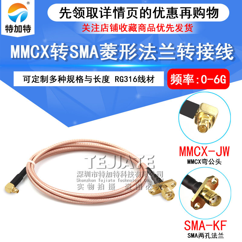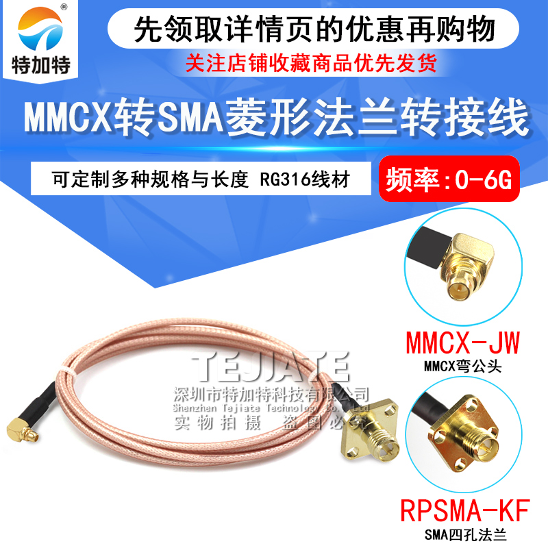 MMCX-JW/SMA-KF转接线 MMCX弯公头转SMA菱形2孔法兰4孔固定射频线