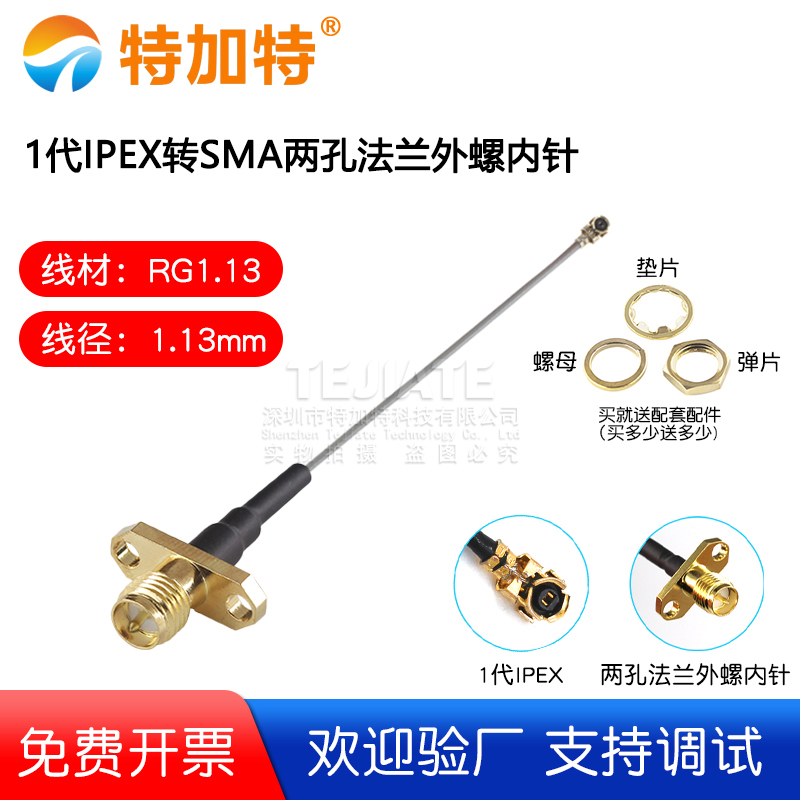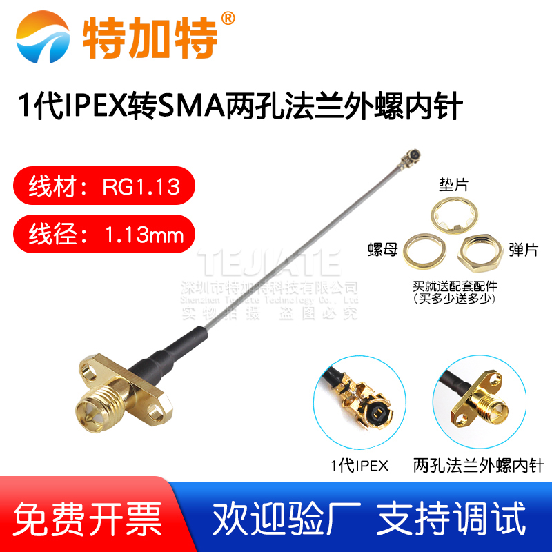 1代IPEX转SMA两孔法兰外螺内孔 1.13线