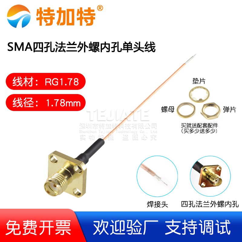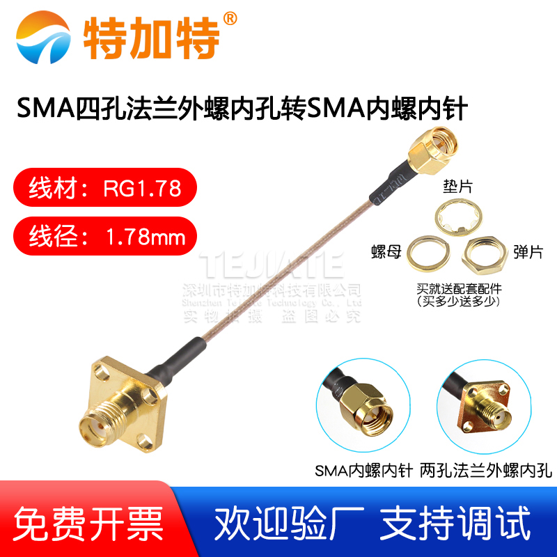 SMA四孔法兰外螺内孔转SMA内螺内针 1.78线
