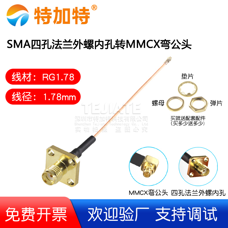SMA四孔法兰外螺内孔转MMCX弯公头 1.78线
