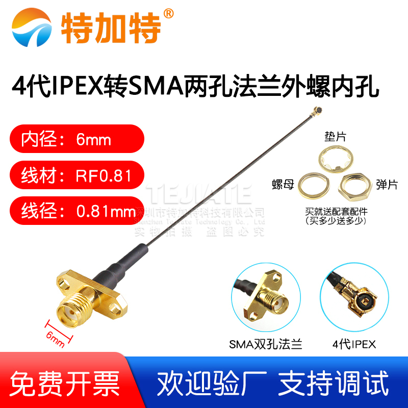 4代IPEX转SMA两孔法兰外螺内孔 0.81线